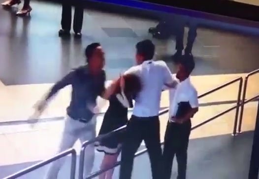 A screen cut from a video shows a man hitting a Vietnam Airlines employee at Noi Bai Airport on October 18.