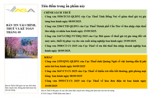 BẢN TIN TÀI CHÍNH, THUẾ VÀ KẾ TOÁN THÁNG 09